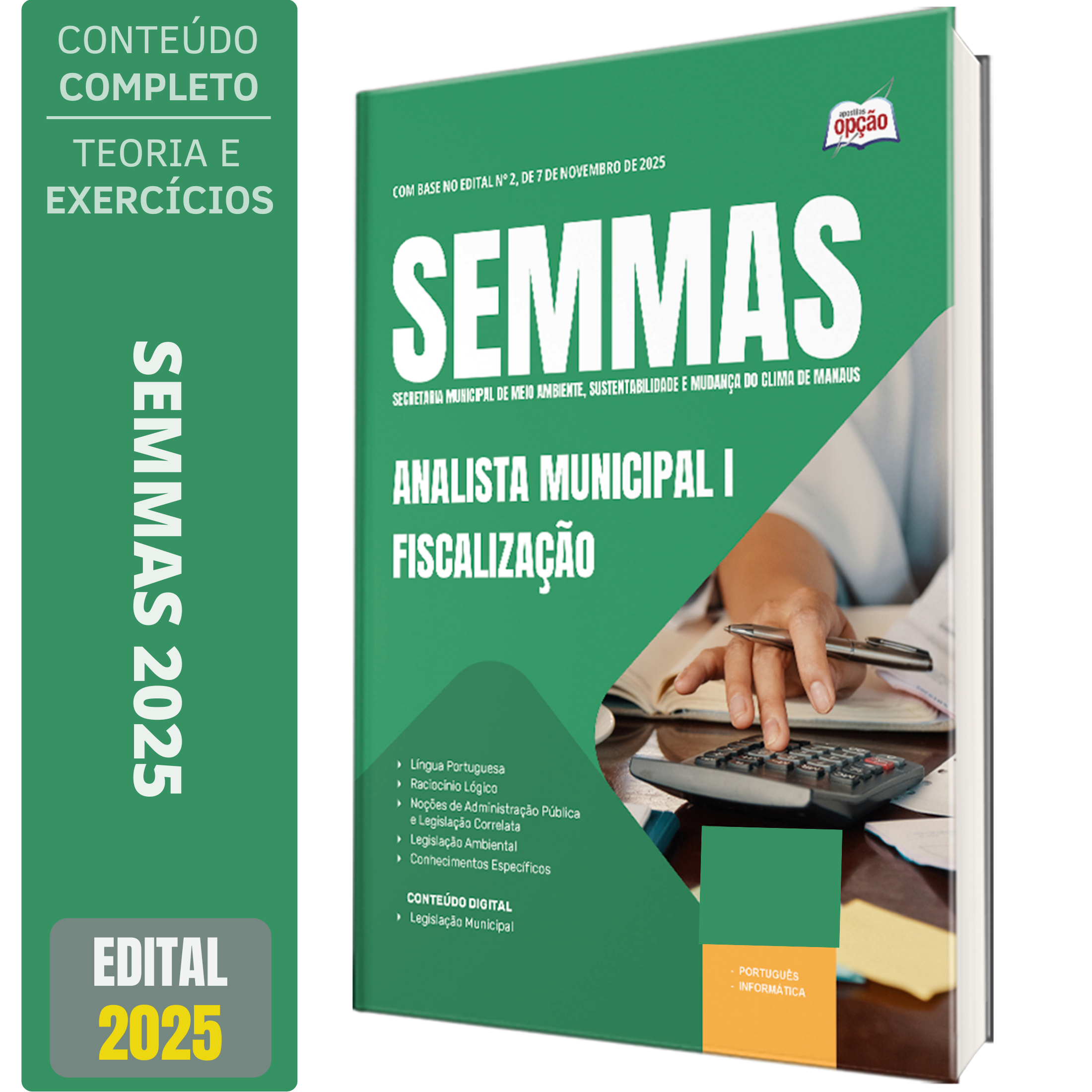 A Apostila Concurso SEMMAS 2025 - Analista Municipal I (Fiscalização) contempla as seguintes matérias: