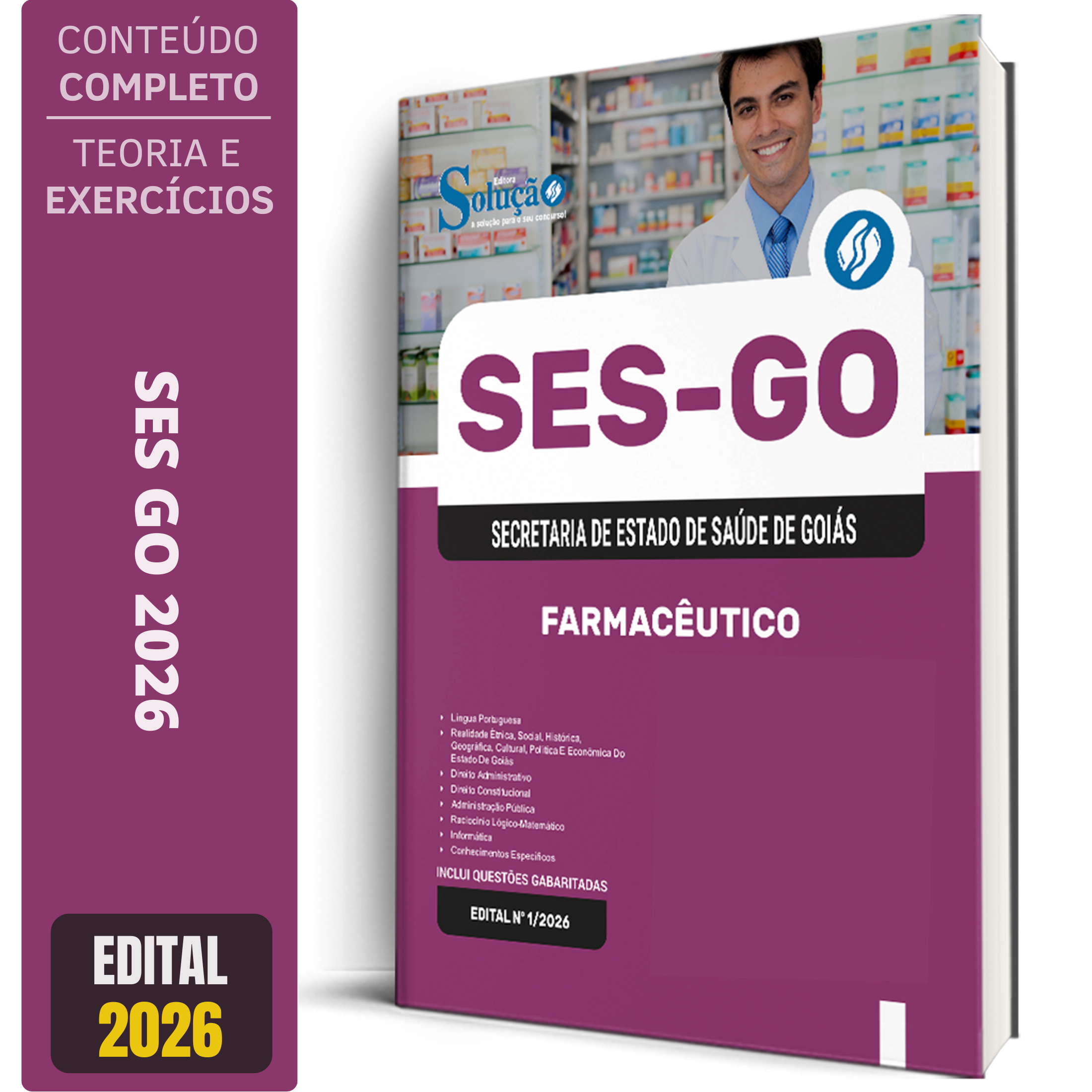 A Apostila Concurso SES GO 2026 - Categoria 2: Farmacêutico contempla as seguintes matérias: