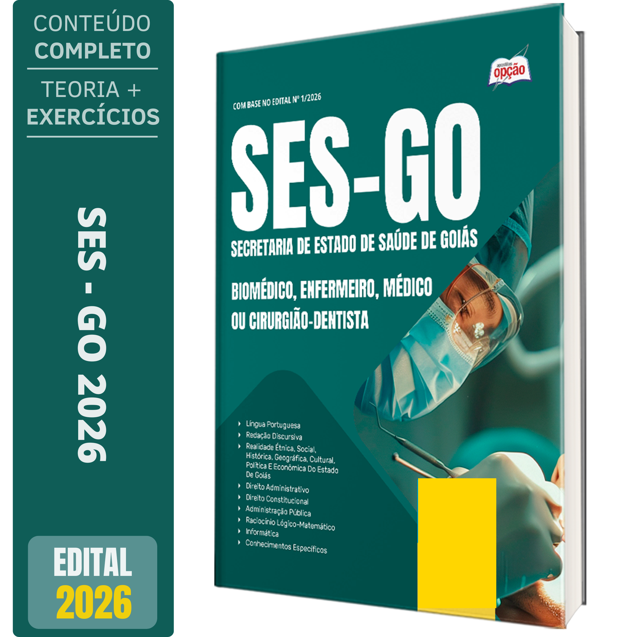 Apostila para Concurso SES-GO 2026 - Categoria 1 para o cargo de Biomédico, Enfermeiro, Médico ou Cirurgião-Dentista