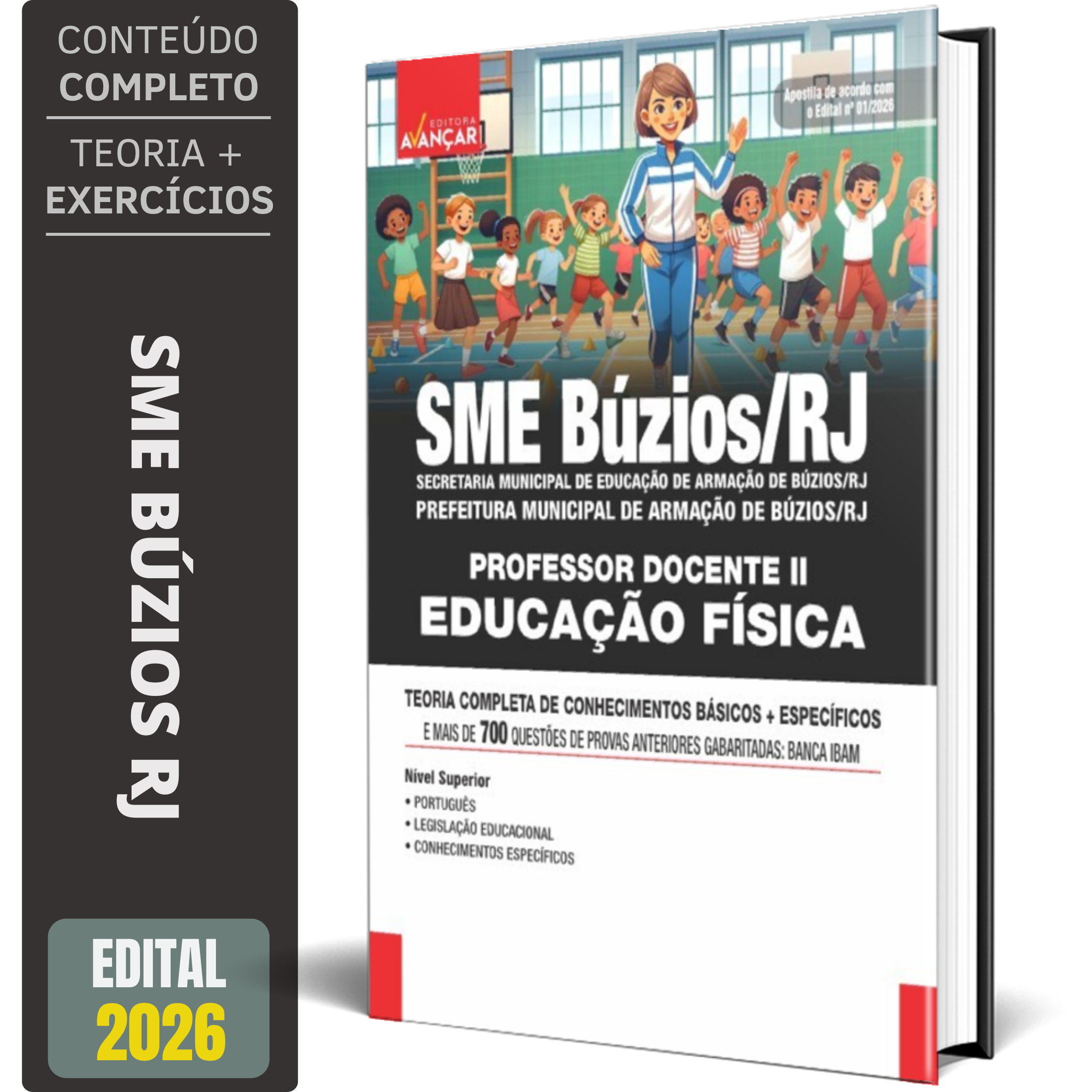 Apostila para SME BÚZIOS RJ - SECRETARIA MUNICIPAL DE EDUCAÇÃO DE ARMAÇÃO DE BÚZIOS/RJ 2026 para o cargo de PROFESSOR DOCENTE II - EDUCAÇÃO FÍSICA