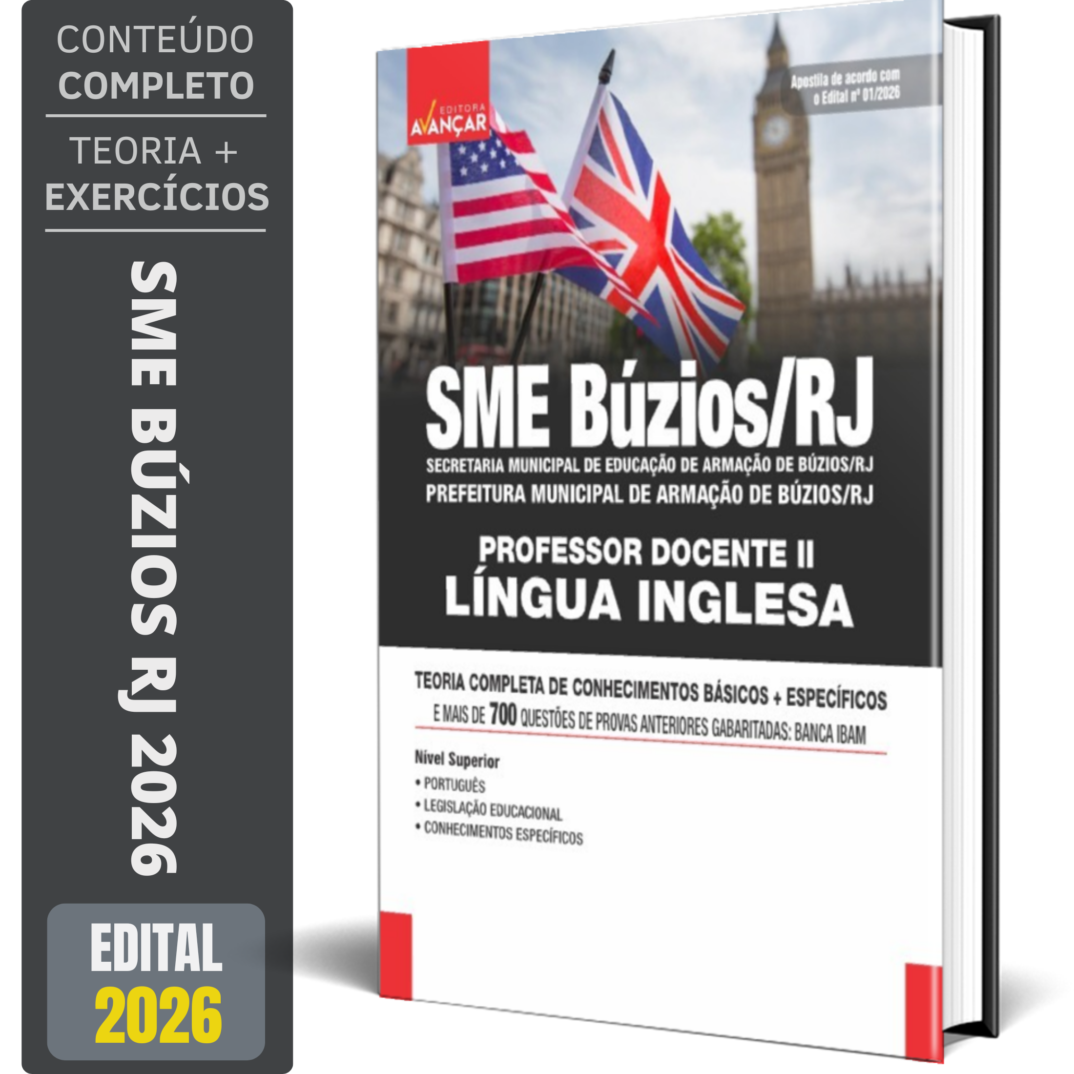 A Apostila Concurso SME BÚZIOS RJ - SECRETARIA MUNICIPAL DE EDUCAÇÃO DE ARMAÇÃO DE BÚZIOS/RJ 2026 - PROFESSOR DOCENTE II - LÍNGUA INGLESA contempla as seguintes matérias: