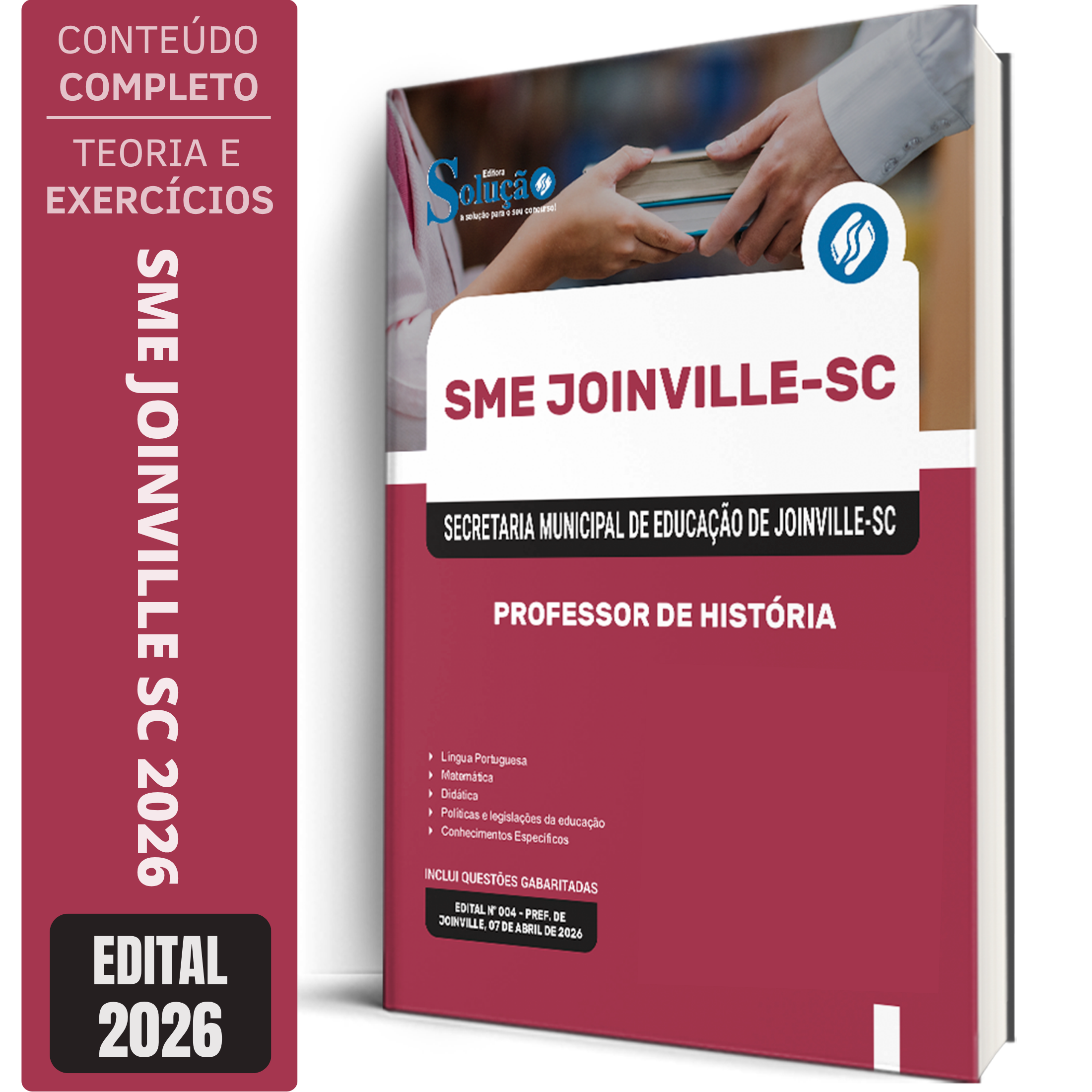 A Apostila para Professor de História do concurso SME Joinville SC 2026 foi rigorosamente elaborada conforme o edital, o que torna o seu conteúdo completo e atualizado.