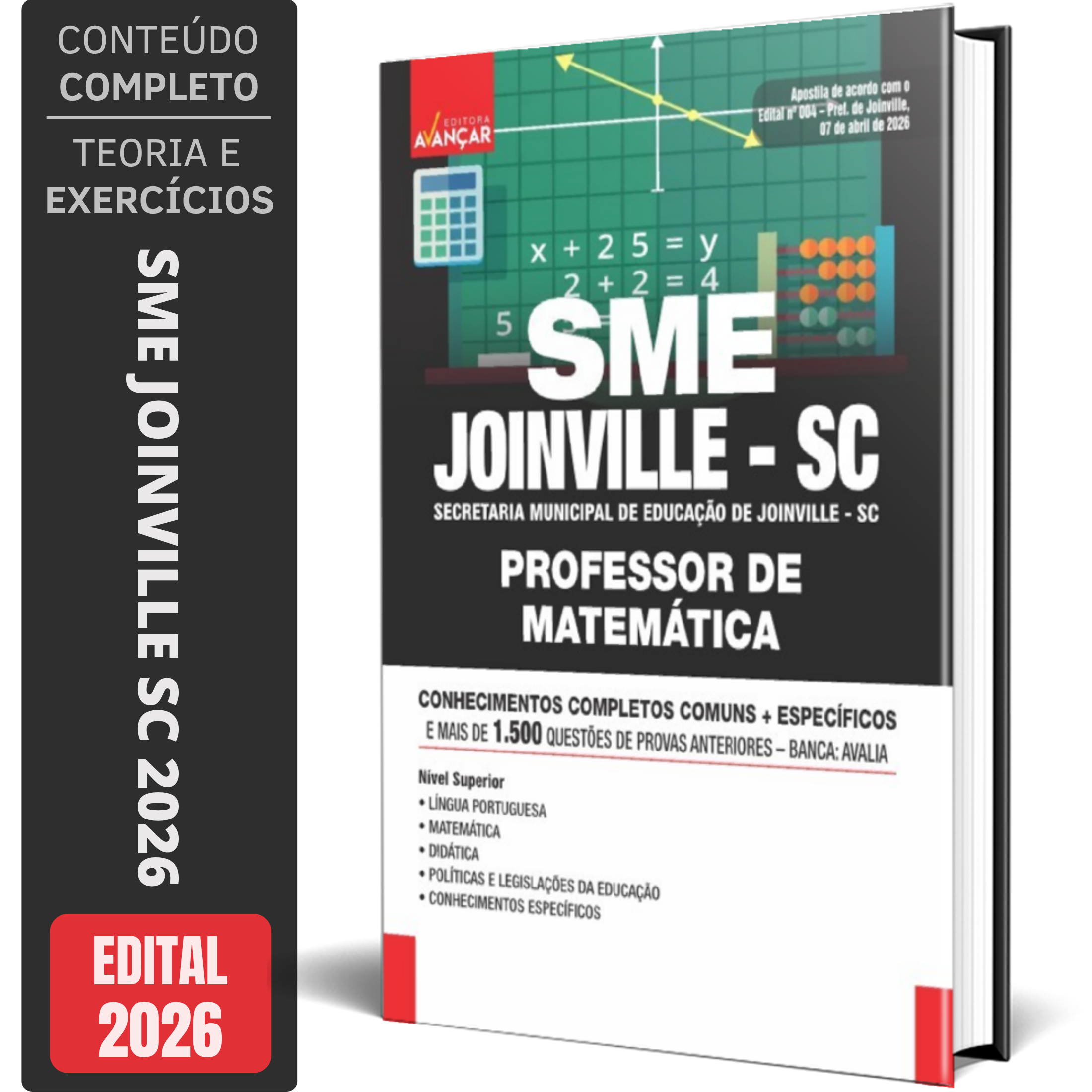 A Apostila para Professor de Matemática do concurso SME Joinville SC 2026 foi rigorosamente elaborada conforme o edital, o que torna o seu conteúdo completo e atualizado.