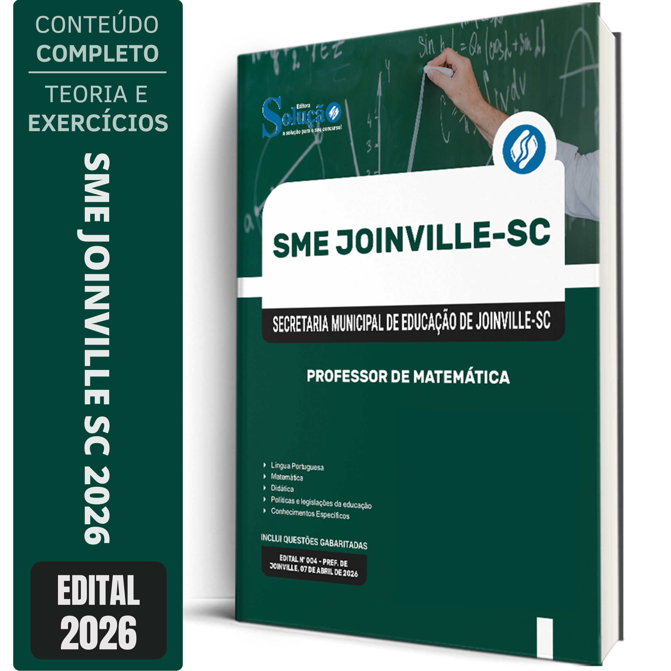 A Apostila para Professor de Matemática do concurso SME Joinville SC 2026 foi rigorosamente elaborada conforme o edital, o que torna o seu conteúdo completo e atualizado.