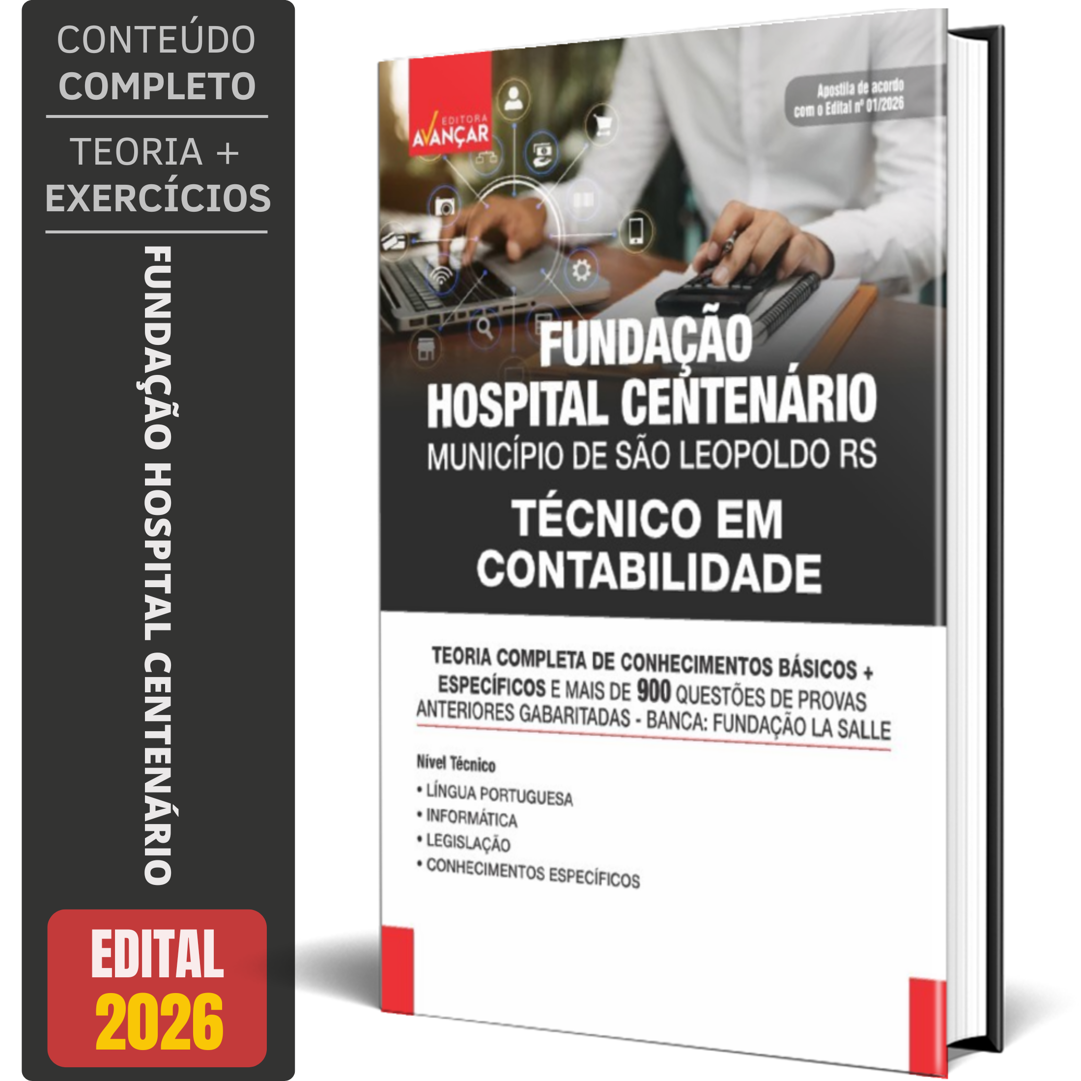 A Apostila Concurso FUNDAÇÃO HOSPITAL CENTENÁRIO 2026 - TÉCNICO EM CONTABILIDADE contempla as seguintes matérias: