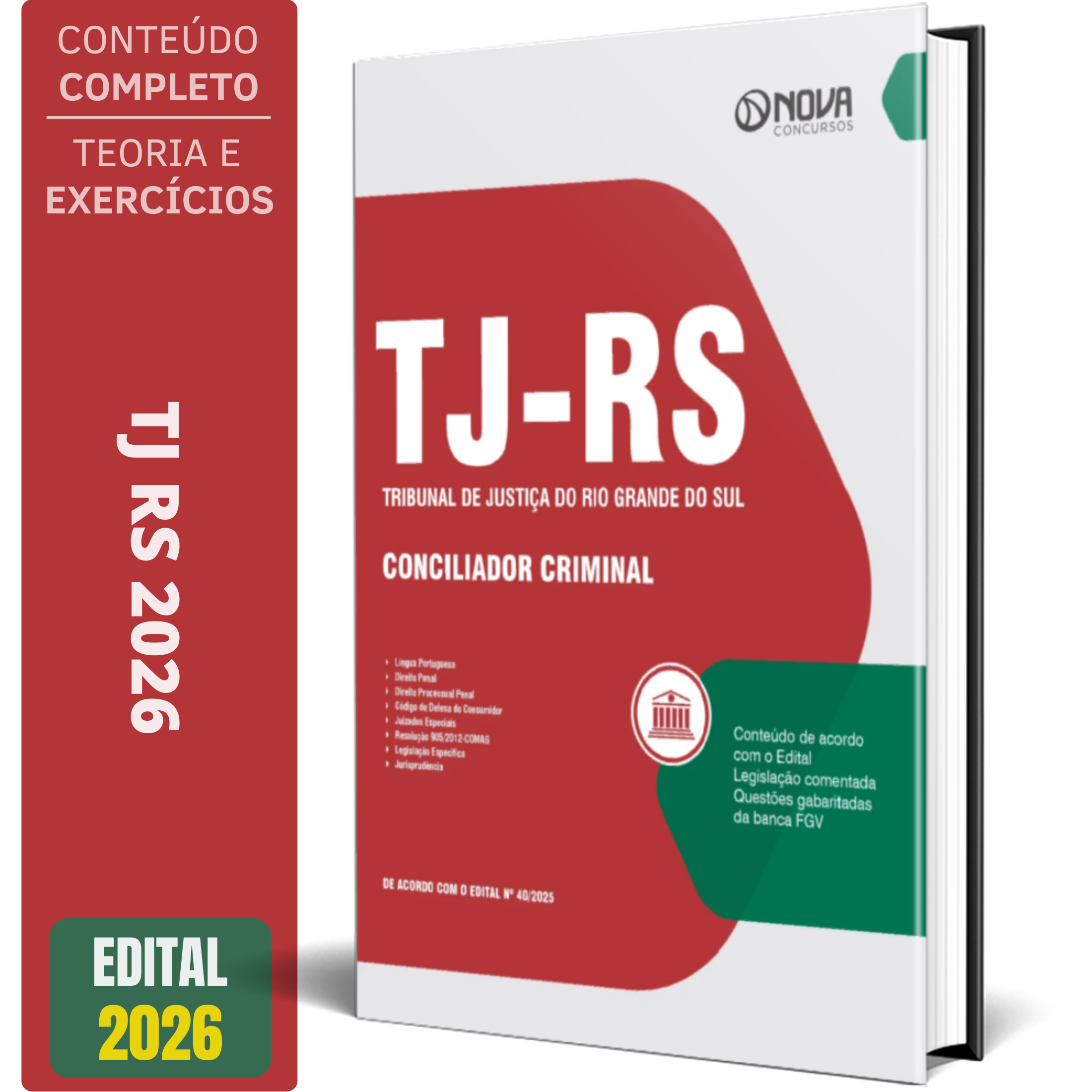 A Apostila Concurso TJ-RS 2026 - Conciliador Criminal contempla as seguintes matérias: