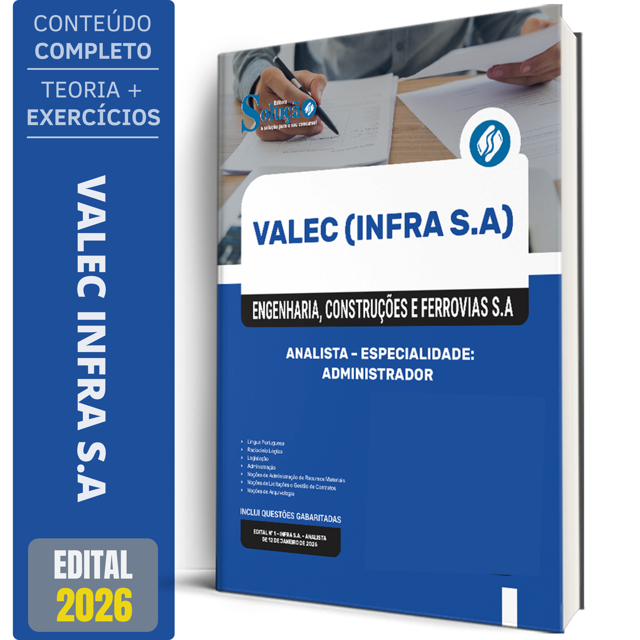 A Apostila Concurso VALEC 2026 - Analista - Administrador contempla as seguintes matérias:
