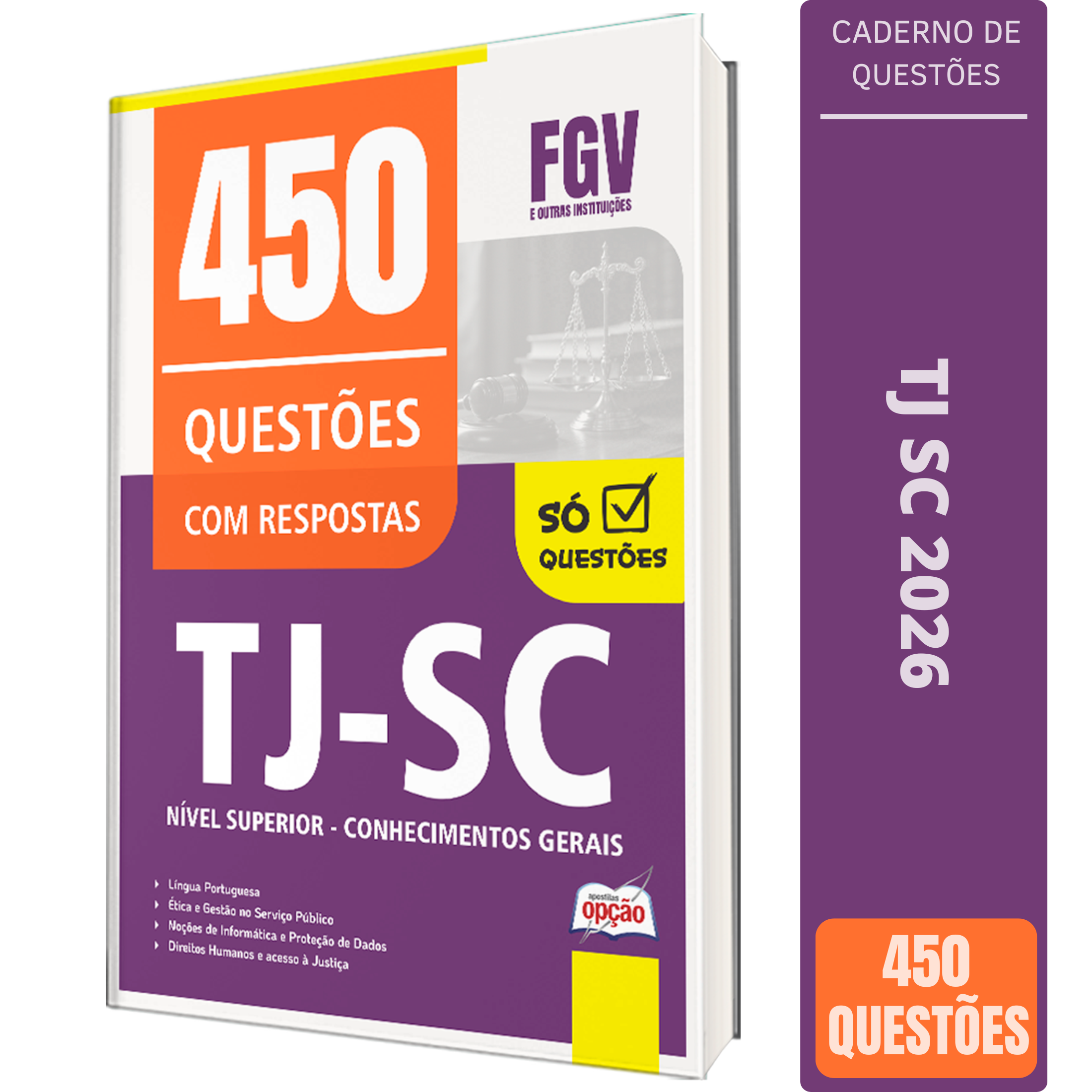 O Caderno de Questões TJ-SC - Nível Superior - Conhecimentos Gerais - 450 Questões Gabaritadas traz questões cuidadosamente selecionadas pela nossa equipe editorial, de acordo com o edital mais recente do concurso.