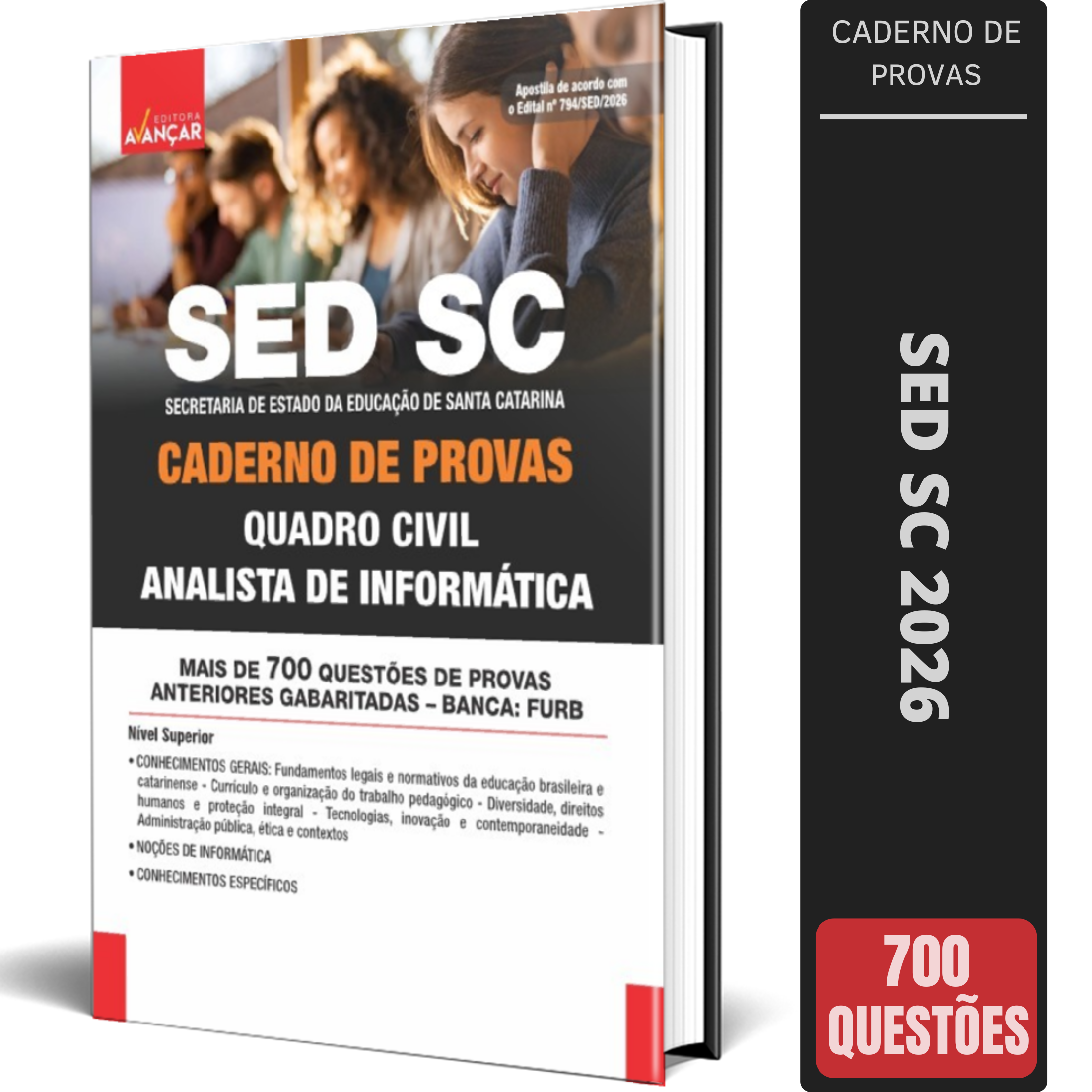 A Apostila para Quadro do Magistério – Caderno de Provas – Analista de Informática do concurso SED SC 2026 foi rigorosamente elaborada conforme o edital, o que torna o seu conteúdo completo e atualizado.