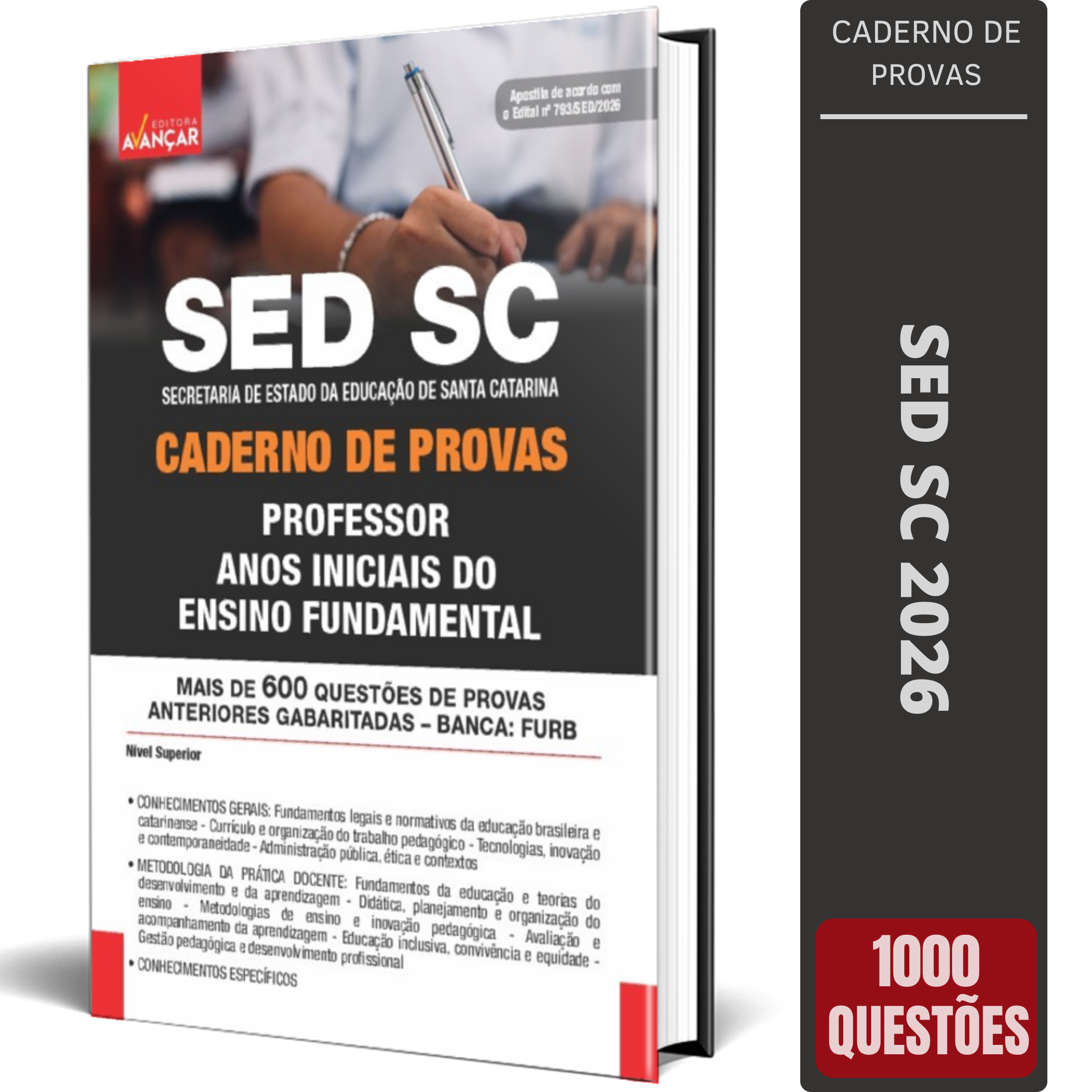 A Apostila para Professor – Caderno de Provas –Anos Iniciais do Ensino Fundamental do concurso SED SC 2026 foi rigorosamente elaborada conforme o edital, o que torna o seu conteúdo completo e atualizado.