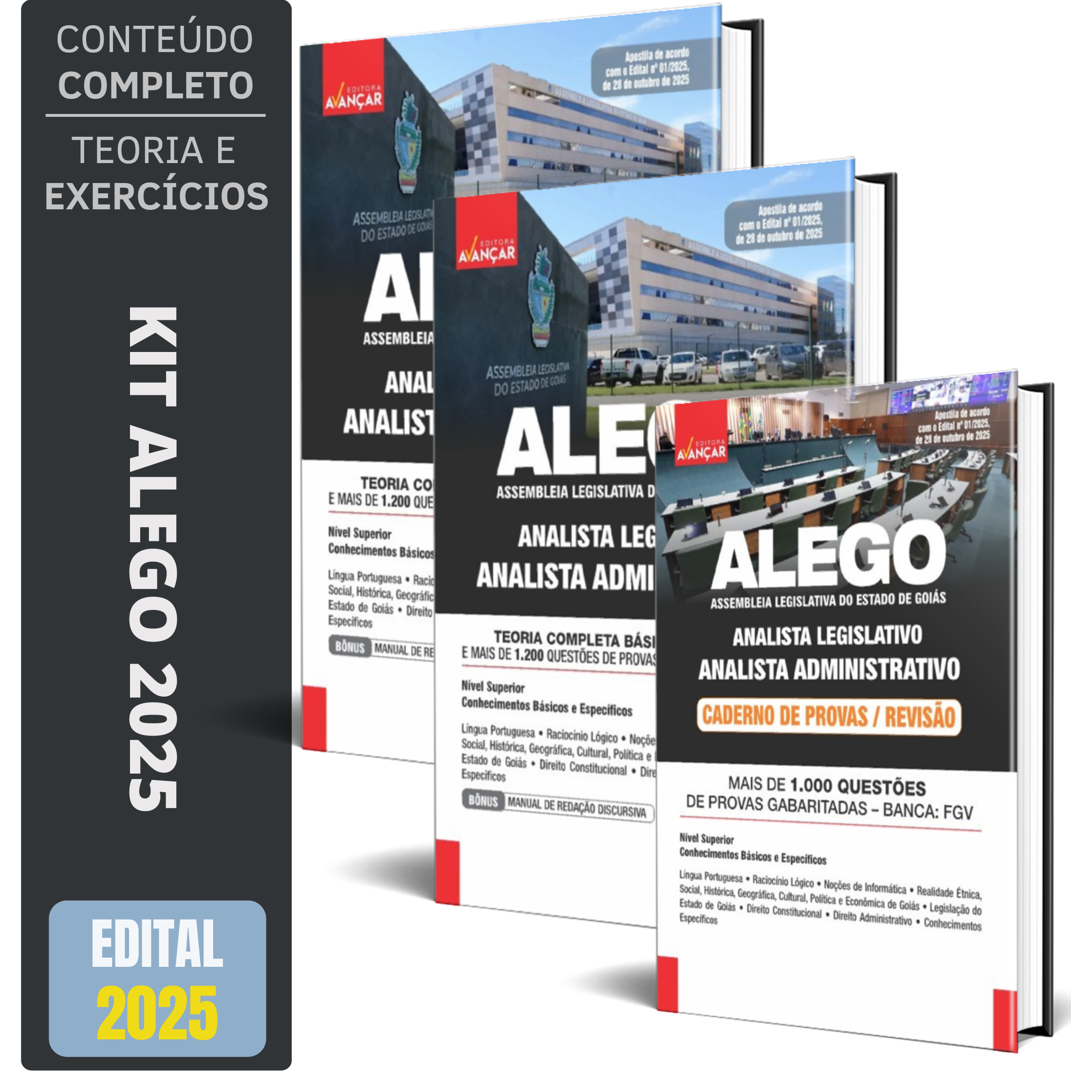 ALEGO - ASSEMBLEIA LEGISLATIVA DO ESTADO DE GOIÁS - KIT ANALISTA LEGISLATIVO - ANALISTA ADMINISTRATIVO - TEORIA COMPLETA + CADERNO DE PROVAS