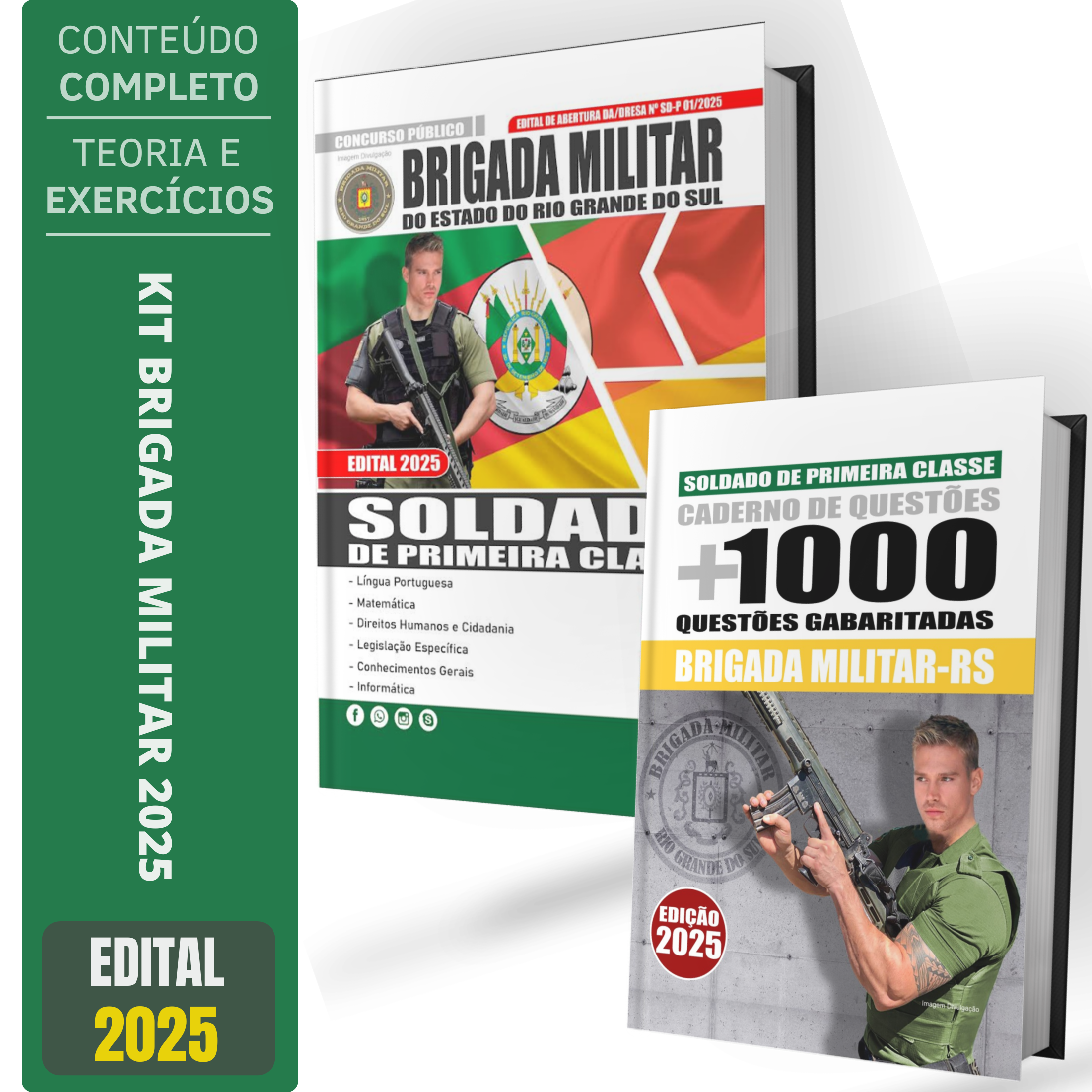 Kit Apostila + Caderno de Testes para BRIGADA MILITAR-RS 2025 para o cargo de SOLDADO DE PRIMEIRA CLASSE