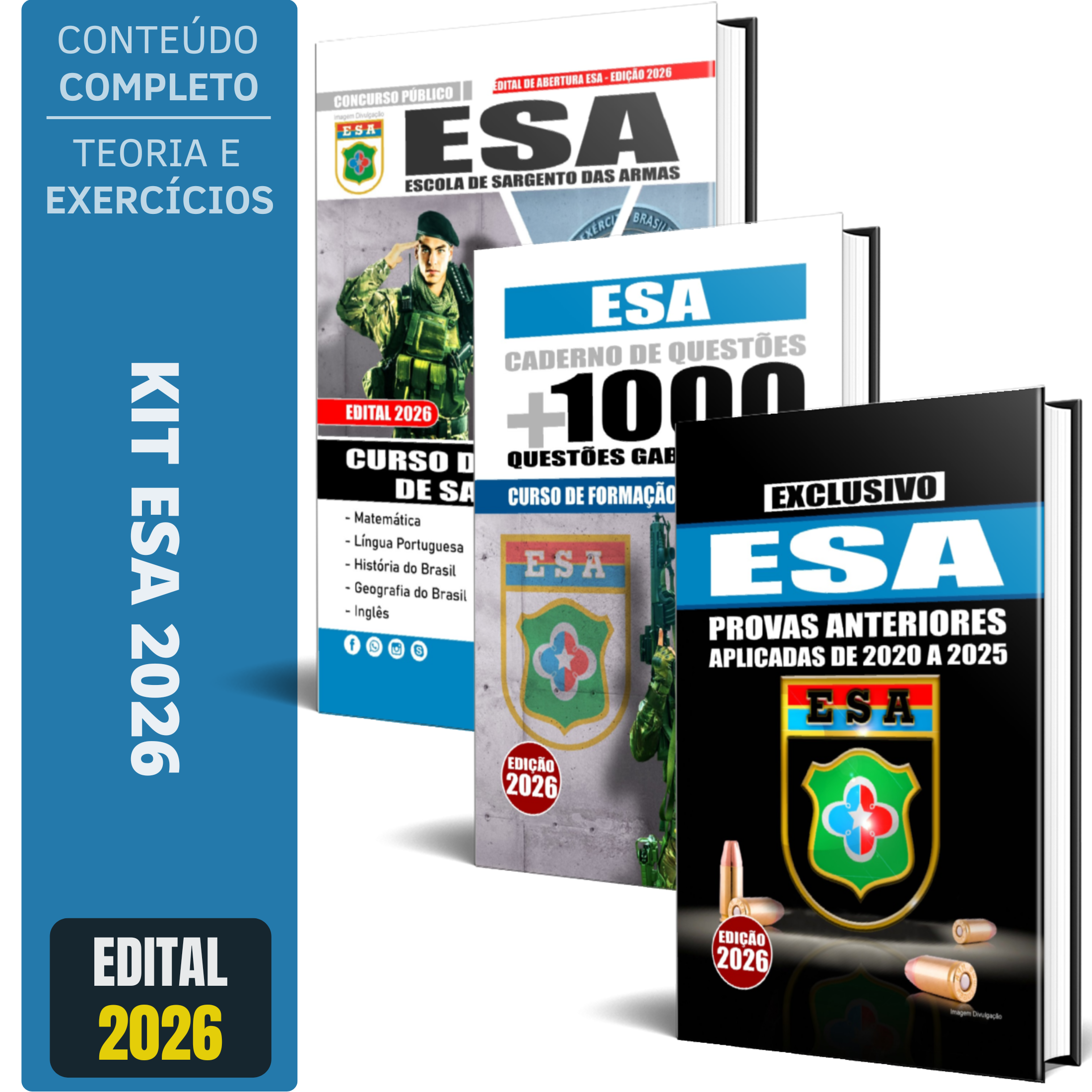 Kit Apostila Concurso ESA - Sargento 2026 + Caderno de Testes + Provas Anteriores ESA de 2020 a 2025