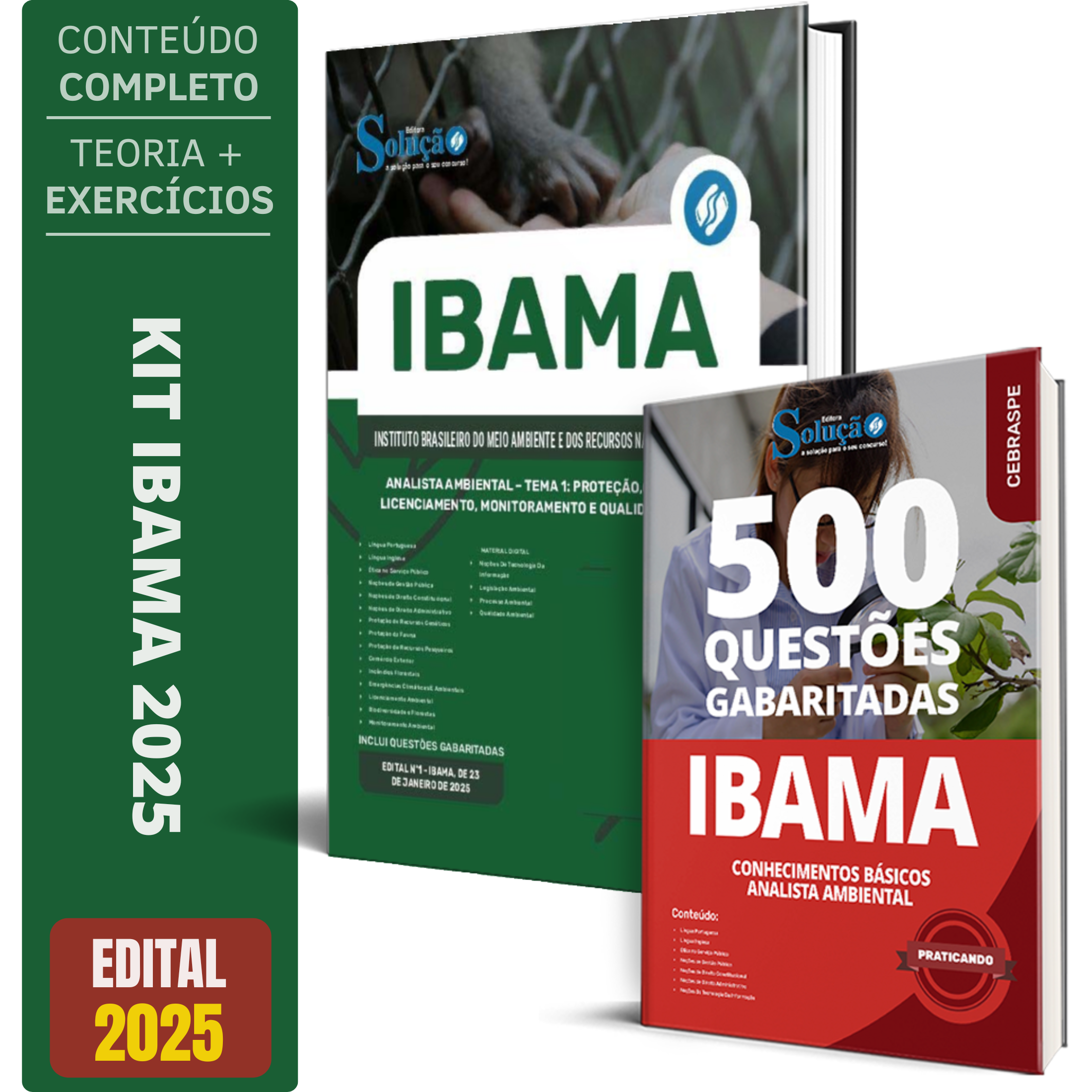 Kit Apostila + Caderno de Testes para IBAMA 2025 para o cargo de Analista Ambiental - Tema 1: Proteção, Conservação, Licenciamento, Monitoramento e Qualidade Ambiental