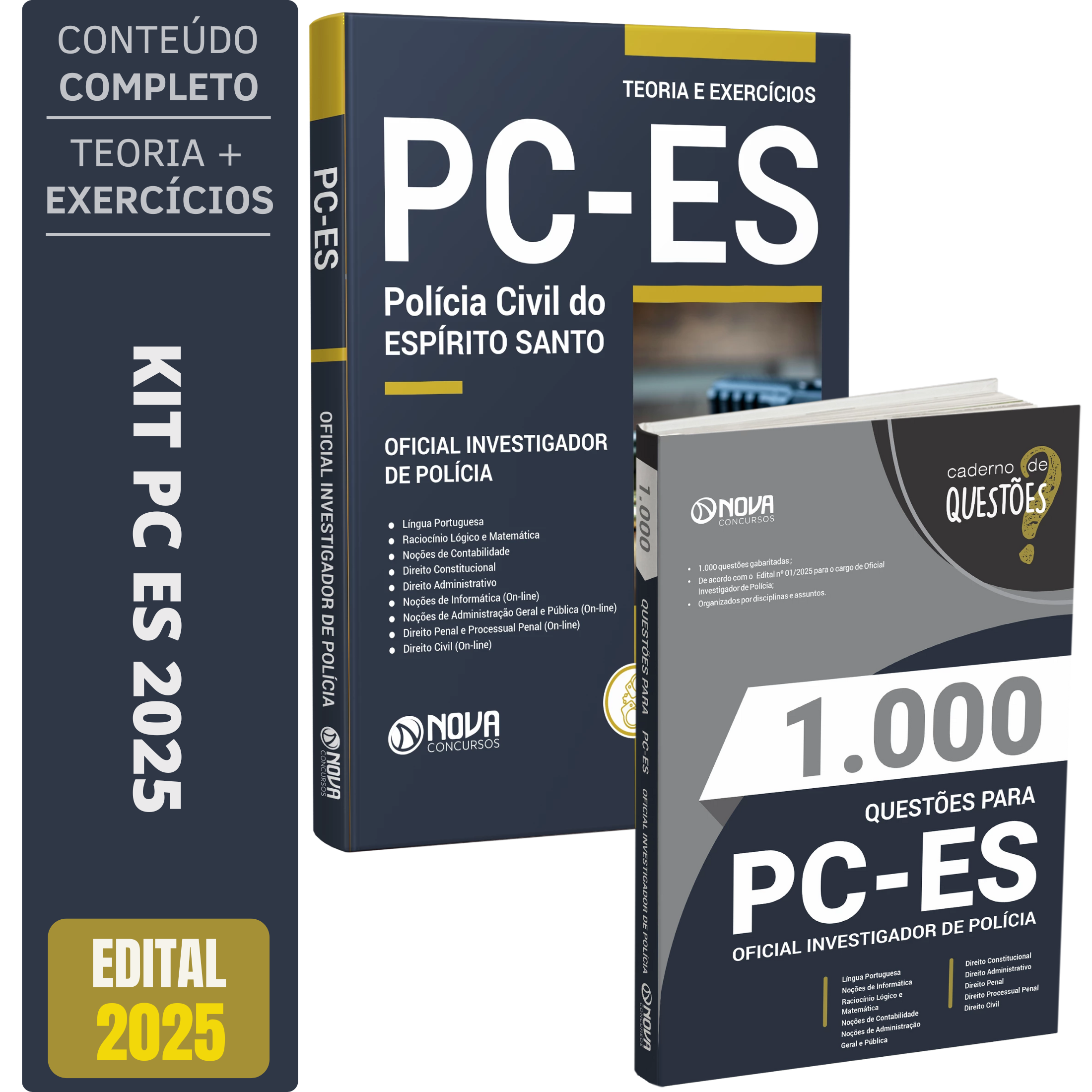Kit Apostila + Caderno de Testes para Concurso PC-ES 2025 para o cargo de Oficial Investigador