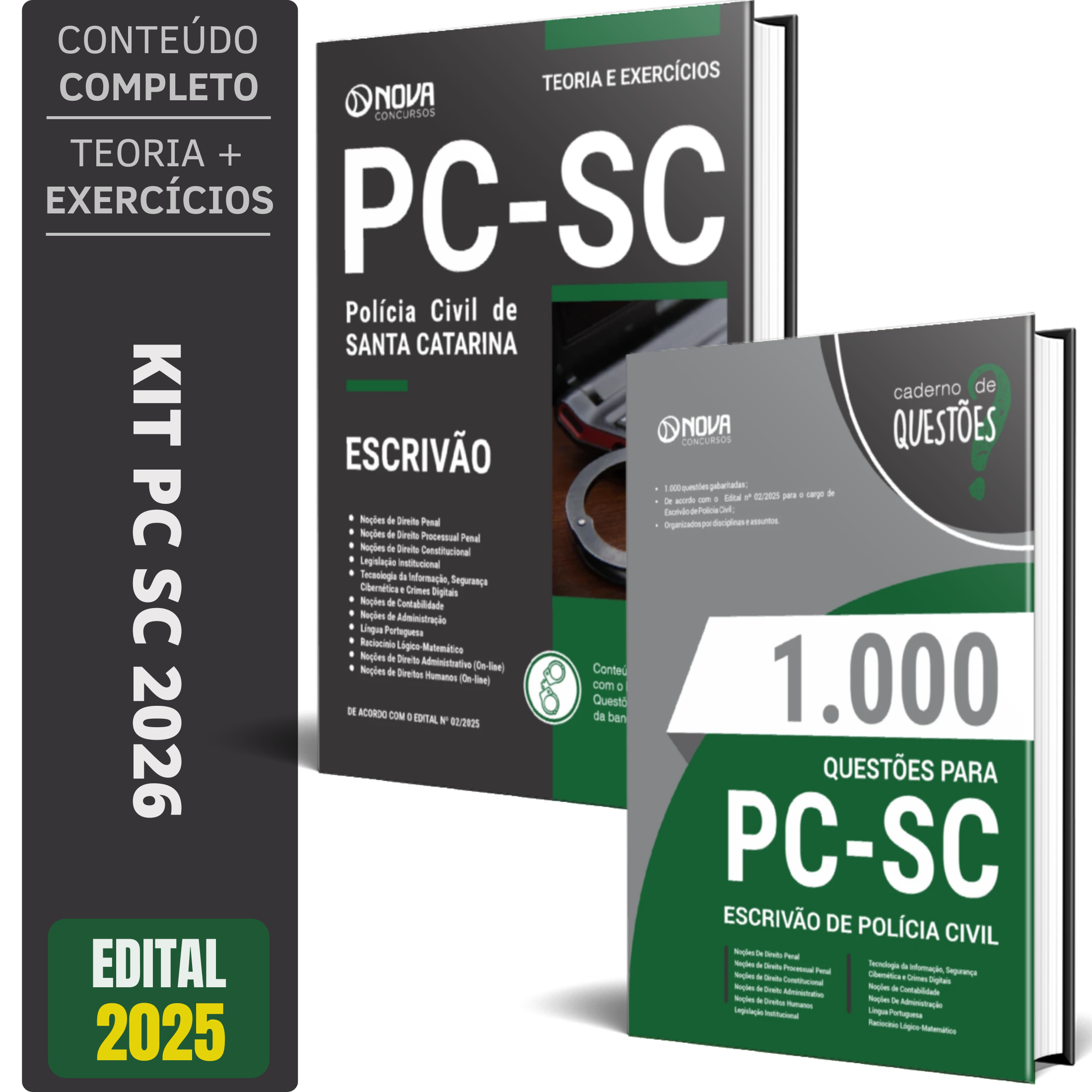 Kit Apostila + Caderno de Testes para PC-SC 2026 para o cargo de Escrivão de Polícia Civil
