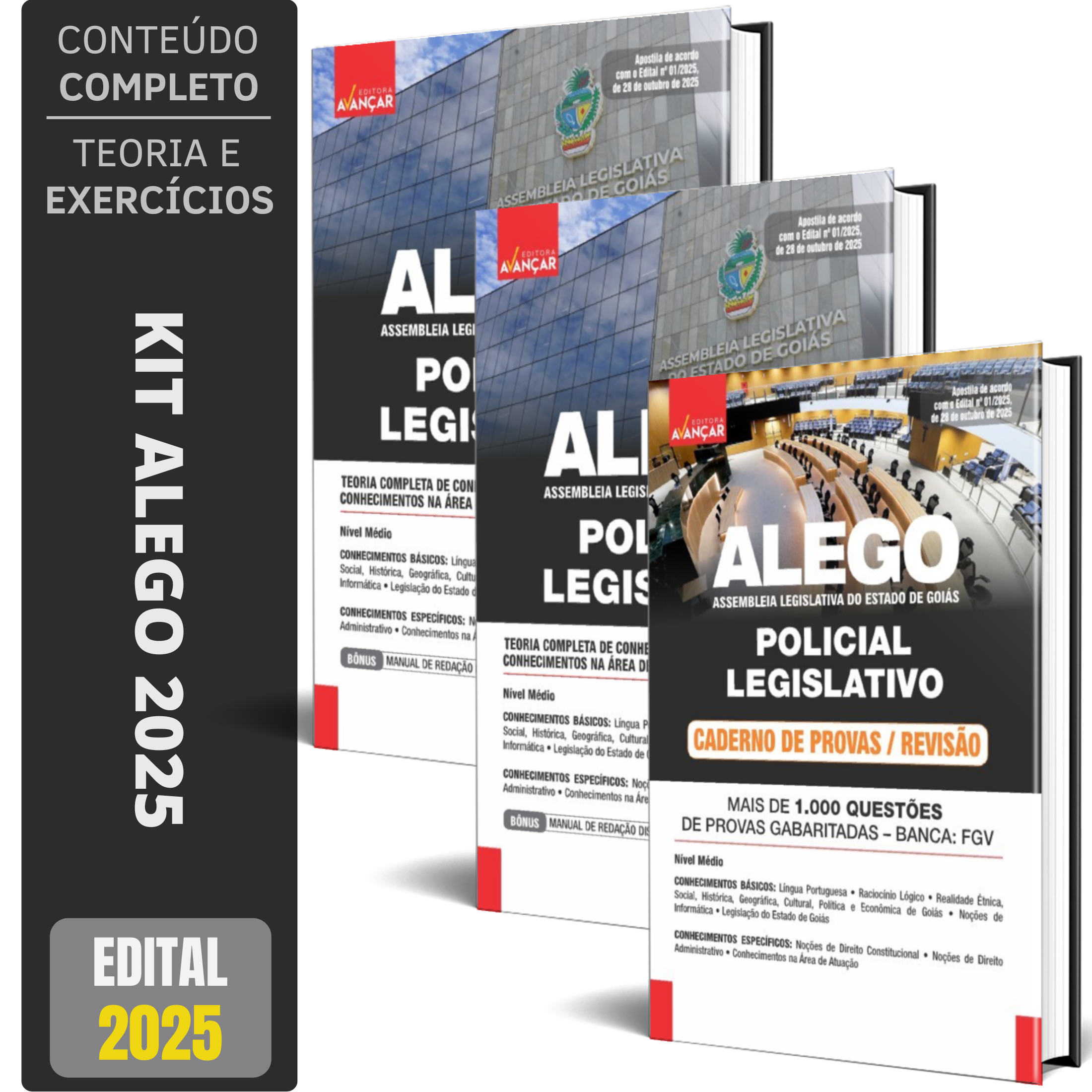 - Nome do Produto: ALEGO - ASSEMBLEIA LEGISLATIVA DO ESTADO DE GOIÁS - KIT POLICIAL LEGISLATIVO - TEORIA COMPLETA + CADERNO DE PROVAS
