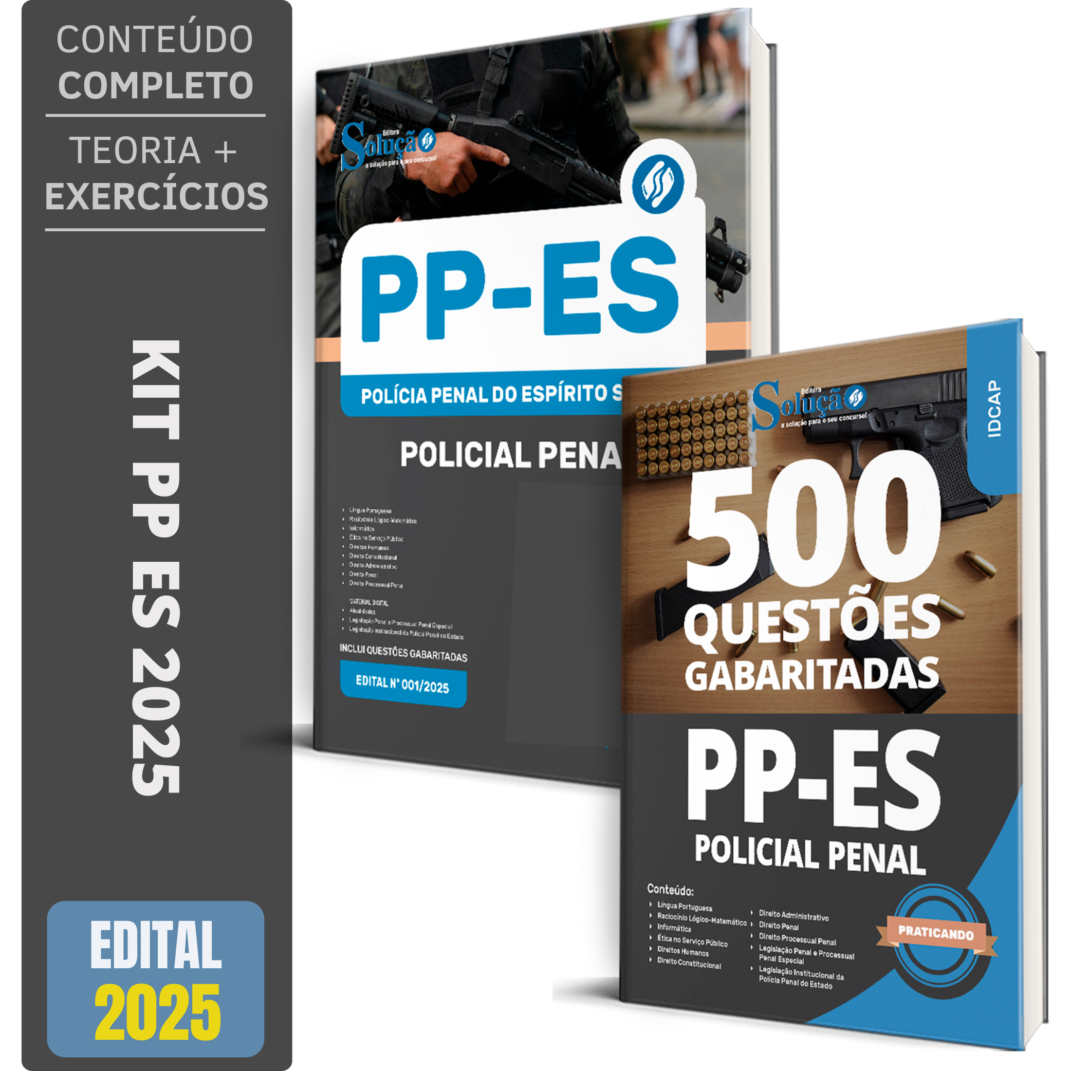 - Apostila PP-ES 2025 - Policia Penal: traz toda a teoria necessária de forma escrita e com exercícios; de acordo com o último edital e elaborado por nossa equipe de professores especializados em concursos.