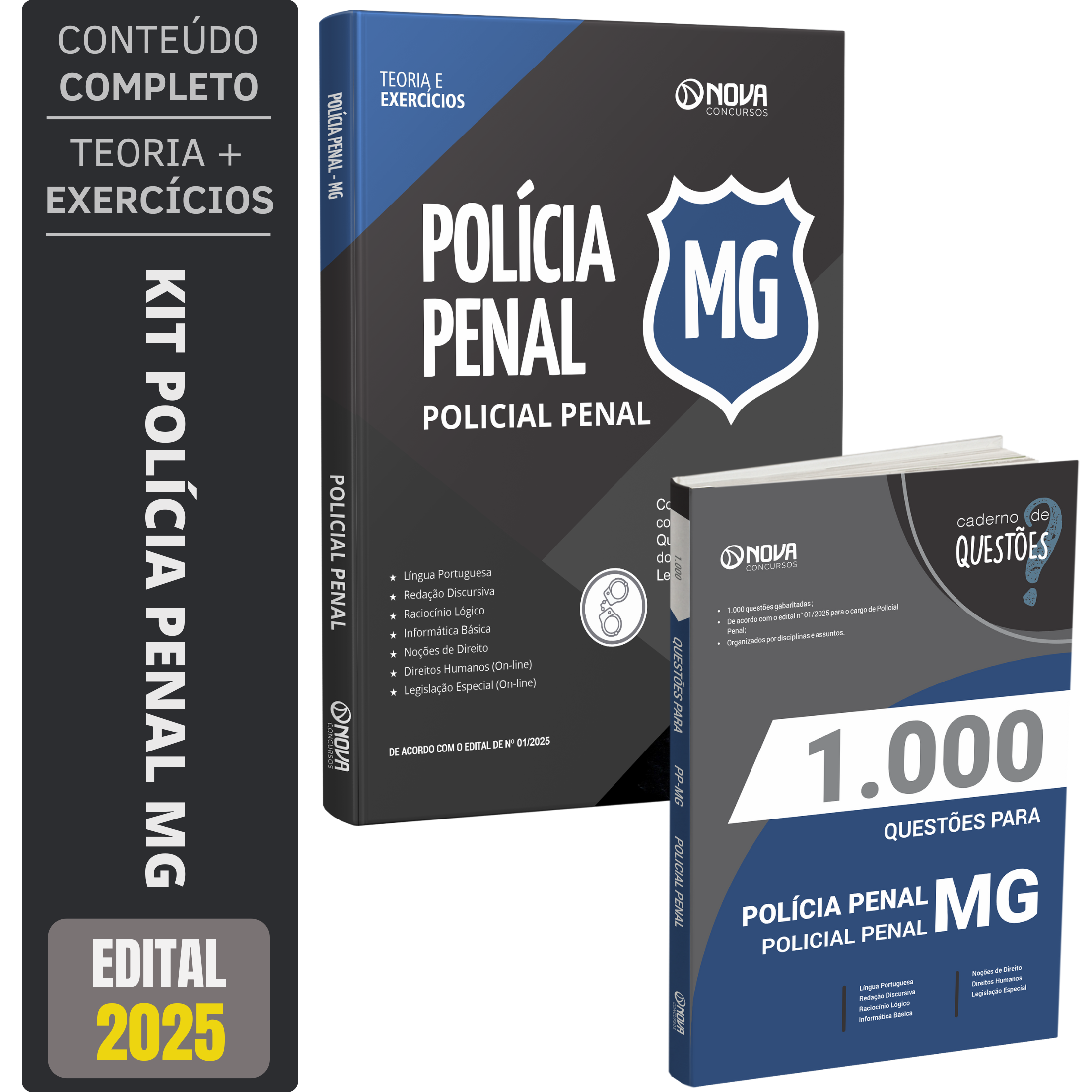 Kit Apostila + Caderno de Testes para PP-MG 2025 para o cargo de Policial Penal