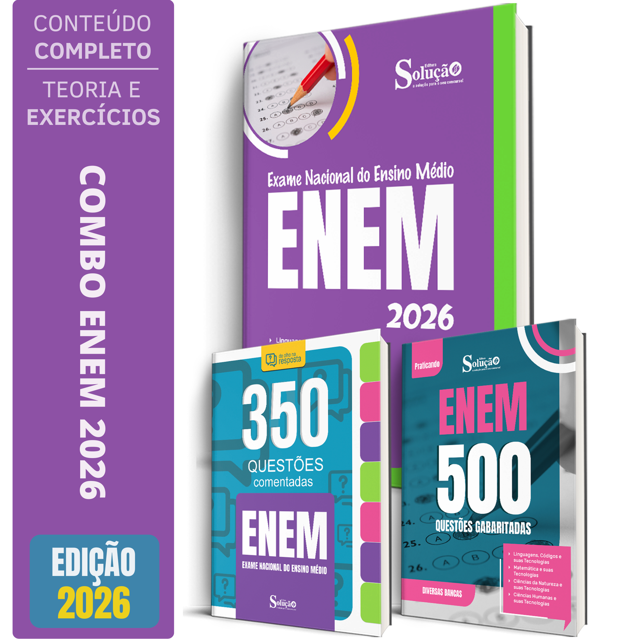 Combo Apostila ENEM 2026 + Caderno de 500 Questões Gabaritadas + Caderno de 350 Questões Comentadas