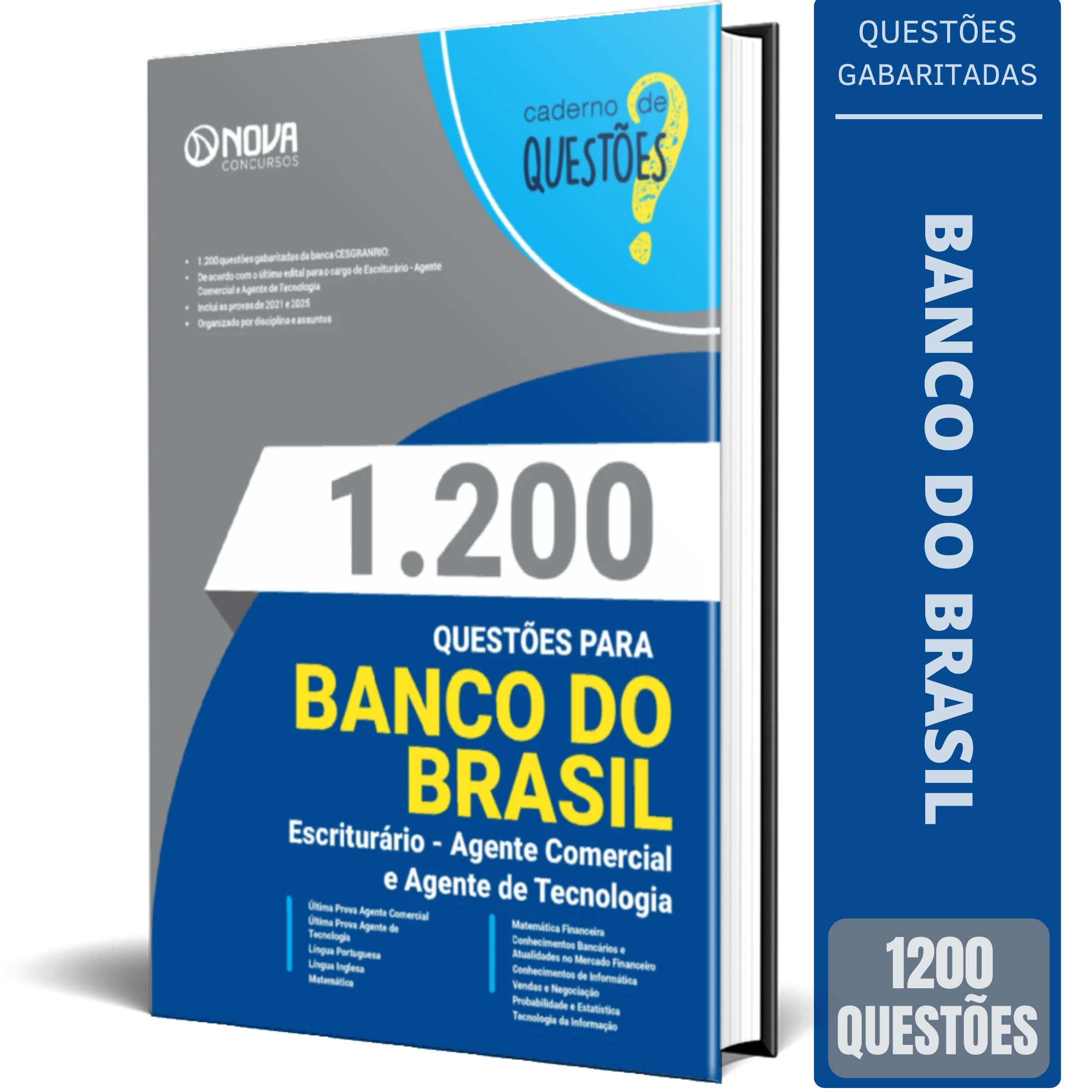 O caderno 1.000 Questões Gabaritadas BB - Banco do Brasil - Escriturário - Agente Comercial e Agente de Tecnologia tem padrão de livro, capa resistente, é muito bem elaborado e se apresenta como um material indispensável à sua preparação no concurso.